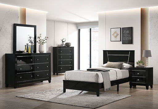 MAGDEBURG Cal.King Bed, Black, 88 1/4"L X 74 7/8"W X 42 3/8"H, 102.5lbs. For a minimalistic space, this ensemble sets the perfect tone. With a slee...