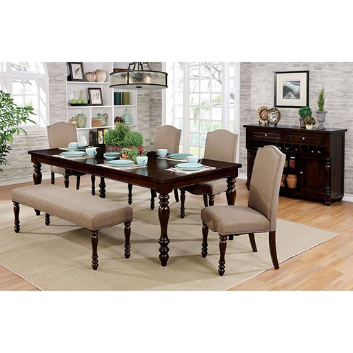 HOLCROFT Antique Cherry/Beige Bench, 56"W X 16"D X 18 1/2"H, 35.2lbs. Bring some classy inspiration into your dining room with this warmed toned wo...