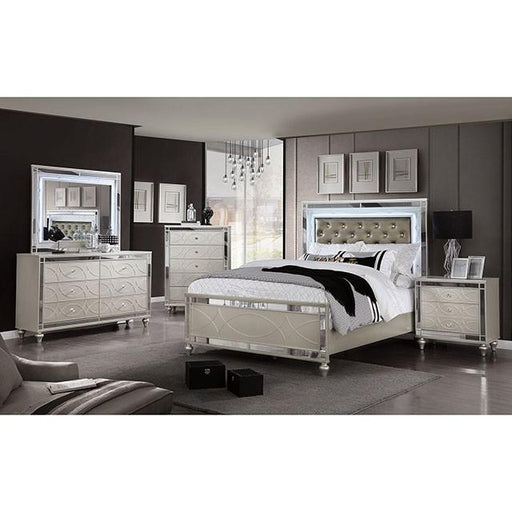 ELIORA Cal.King Bed, 94 1/8"L X 80 3/4"W X 68"H, 239.8lbs. Glamor and shine have never looked as good as it does with this bedroom set from the Eli...
