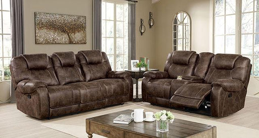 Listowel Brown Love Seat, 59"L X 36"W X 40 1/2"H, 155lbs. Spend your down-time putting your feet up on this sofa set! Flip up the footstools on the...